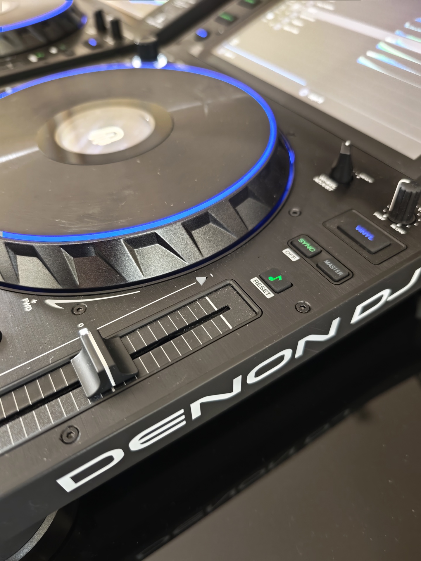 Jog wheel de 8,5" com grande superfície para manipulação táctil, cueing, pitch e scratch naturais.