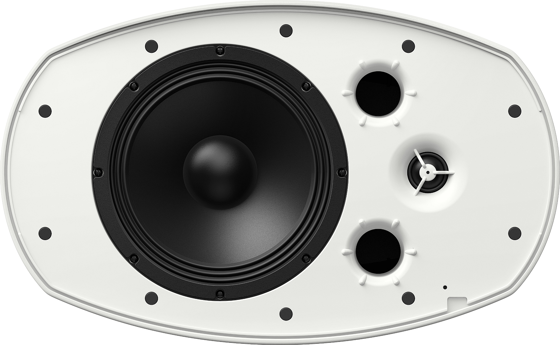 Os entalhes rígidos dentro do suporte em U facilitam o ajuste da direcção do som. Fixar a directividade manualmente e, para segurança extra, fixar com uma chave Allen ou chave de fendas. Se precisar de uma implantação alternativa, pode utilizar os orifícios de 60mm na parte de trás dos altifalantes para os encaixar em espaços desafiantes. Desenho original da caixa curva