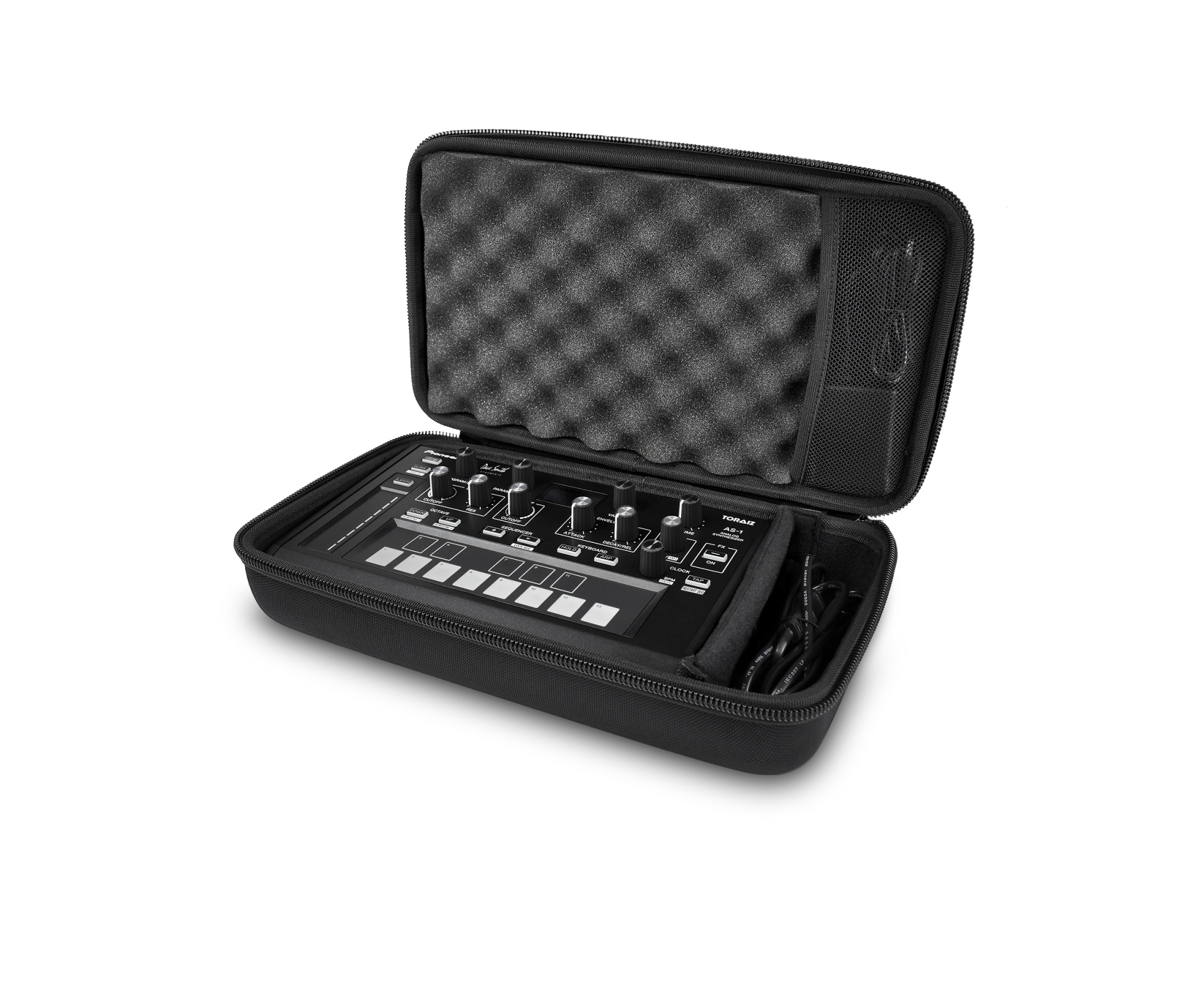 Pioneer DJ DJC TAS1 BAG Dimensões externas (L x P x A): 360 x 220 x 100 mm Dimensões internas (L x P x A): 340 x 190 x 70 mm Estrutura EVA Durashock Poliéster balístico preto Forro de veludo preto Cobertura de espuma acolchoada Tem um compartimento adicional para guardar os cabos com segurança. A proteção de espuma acolchoada da bolsa e o forro de veludo evitam danos causados por vibrações e choques.