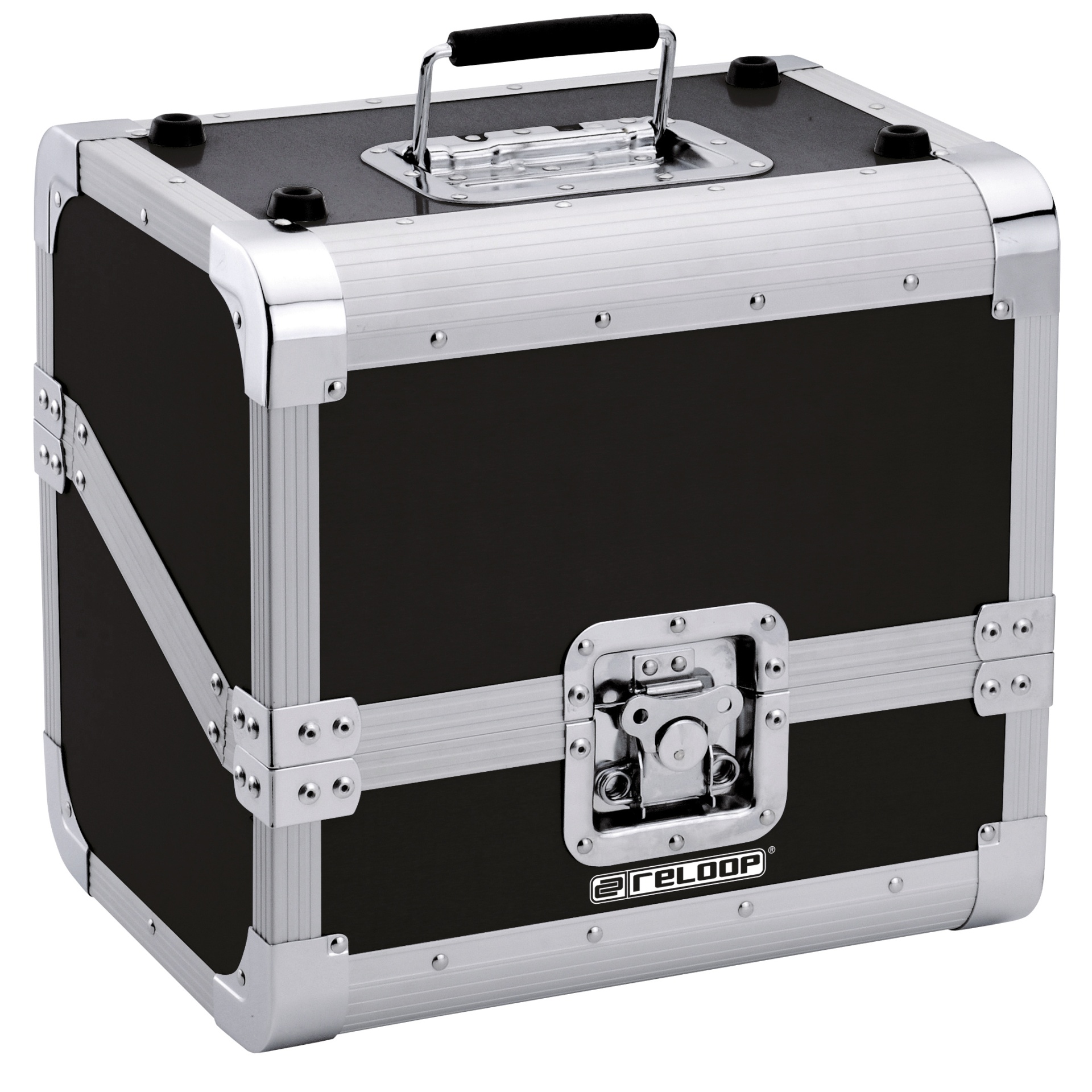 A mala para discos Reloop 80, com a sua construção inclinada, oferece a máxima facilidade de utilização ao procurar discos, devido ao design angular inclinado das duas metades. Quando em modo dividido, os discos na parte da frente ficam mais visíveis e acessíveis, enquanto a parte de trás dos discos fica mais bem apoiada e protegida em comparação com uma divisão convencional 50/50. A inovação da mala da Reloop.