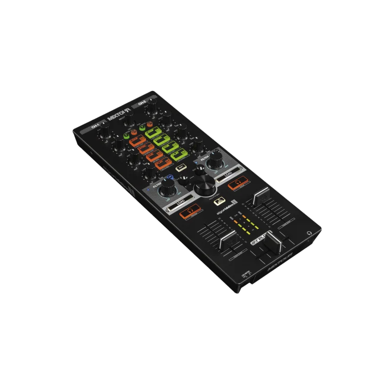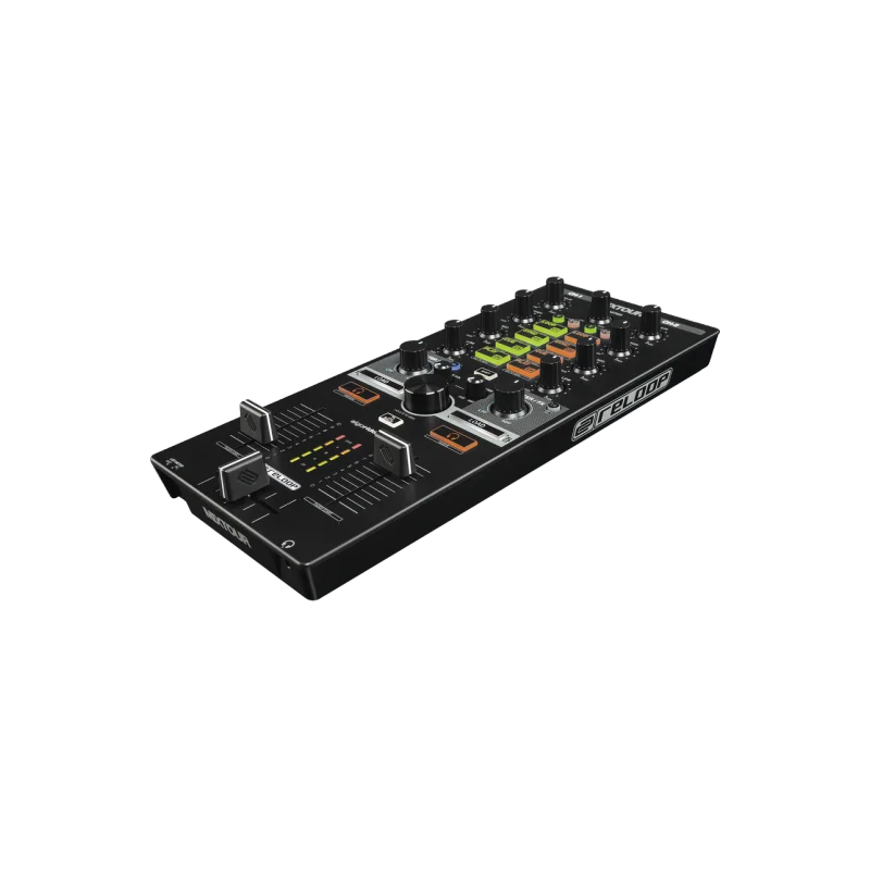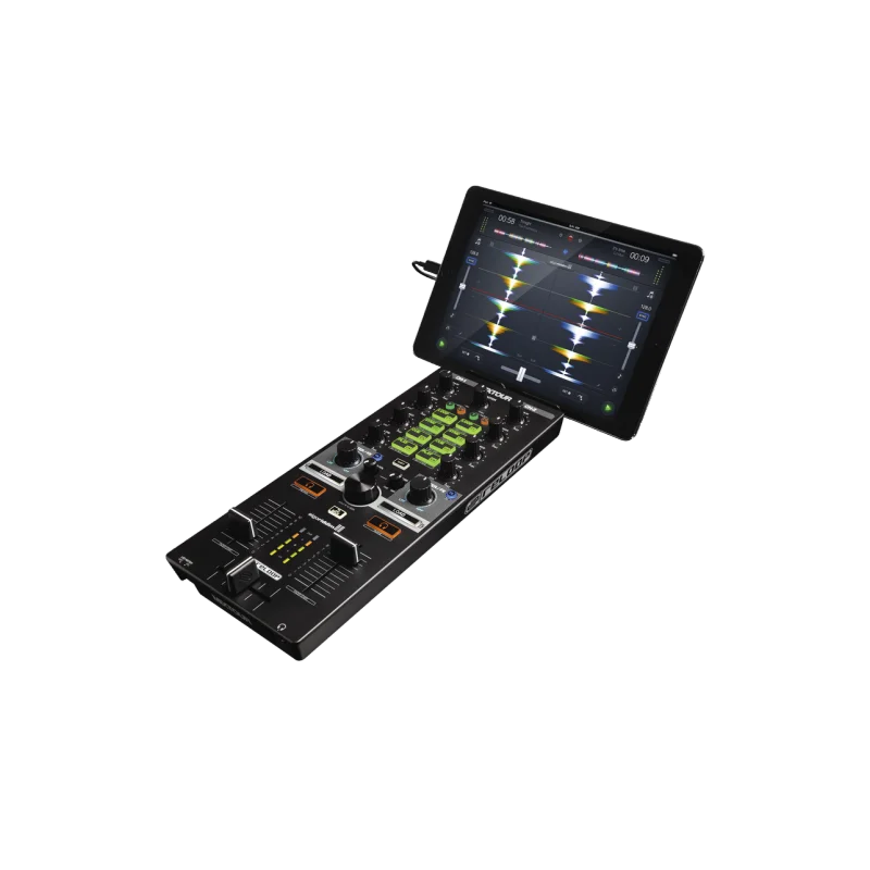 O Reloop MIXTOUR é um controlador DJ portátil multiplataforma desenvolvido para a premiada aplicação djay da Algoriddim.